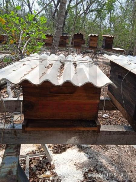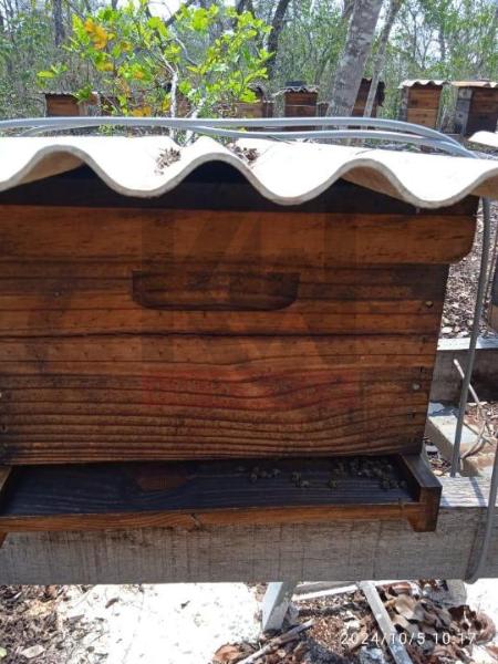 Um apiário com 20 caIxas de abelhas produzindo