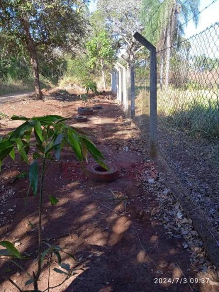 Cercada com alambrado 50% da área e os outros 50% com cerca de arame farpado de 8 fio e portões de ferro com alambrado