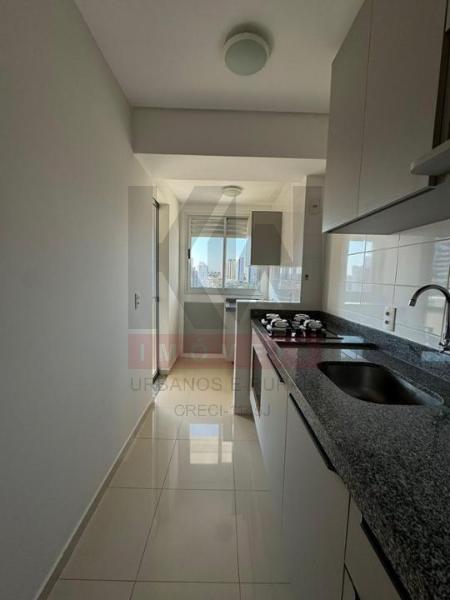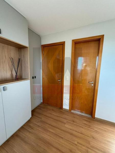 1 suíte + 1 quarto ambos com guarda roupa, sala com painel, cozinha planejada com forno e cooktop, sacada com churrasqueira e armário, banheiro social com armário.