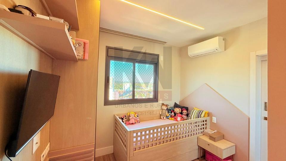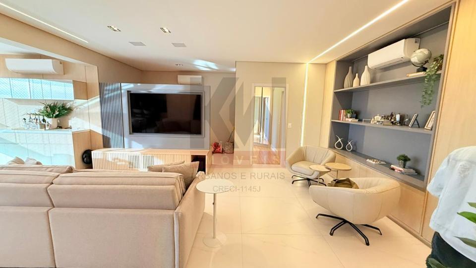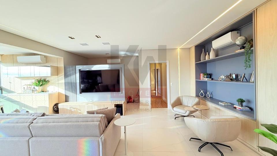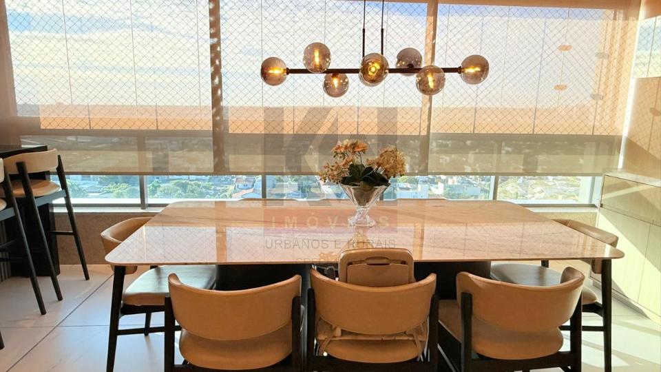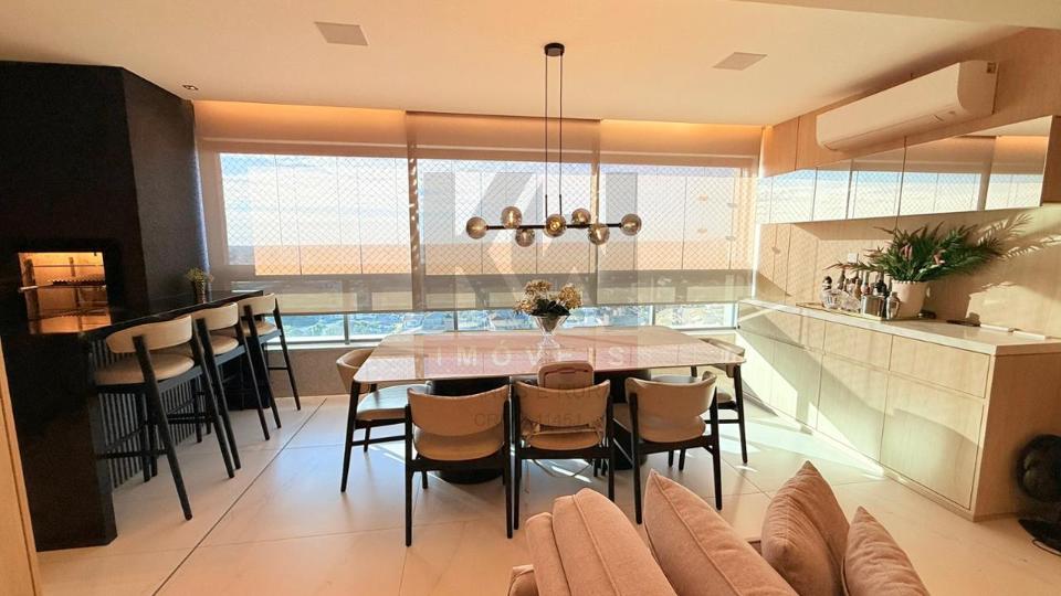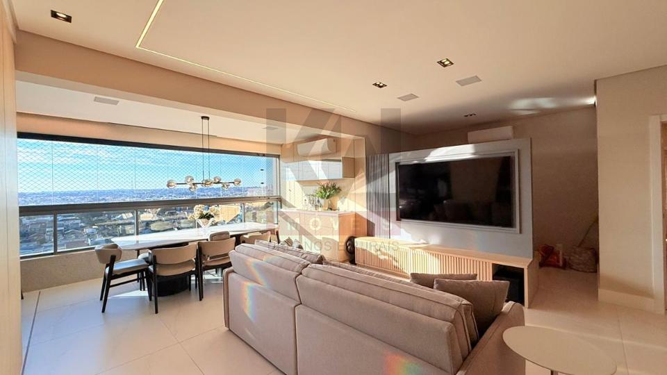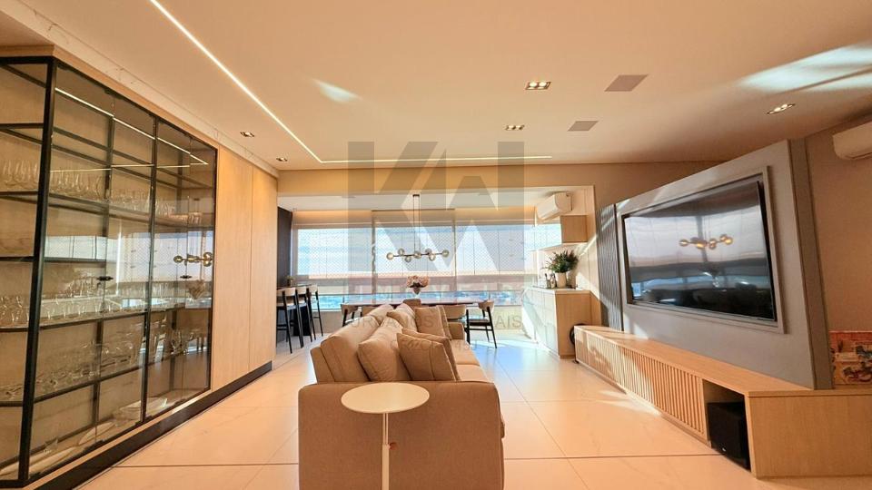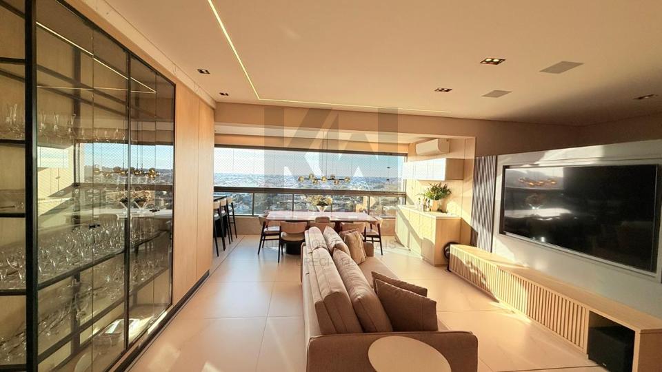 Apartamento mobiliado e luxuoso em todos os quesitos. Ambientes modernos, planejados e decorados com muito bom gosto, mobiliado com móveis e eletros de alto padrão, fino acabamento. são 03 suítes, sendo uma master, lavabo, ampla sala e varanda gourmet integrada, cozinha completa e área de serviço separada. Condomínio completo com 3 piscinas aquecidas, espaço gourmet para receber amigos e familiares, salão de festas, academia completíssima, playground e muito mais.
